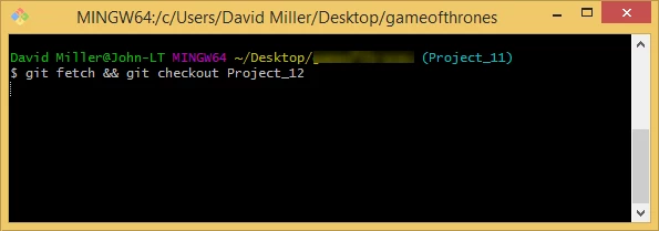 $ git checkout <ProjectName>