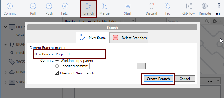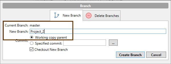 1. Click Branch > New Branch.
