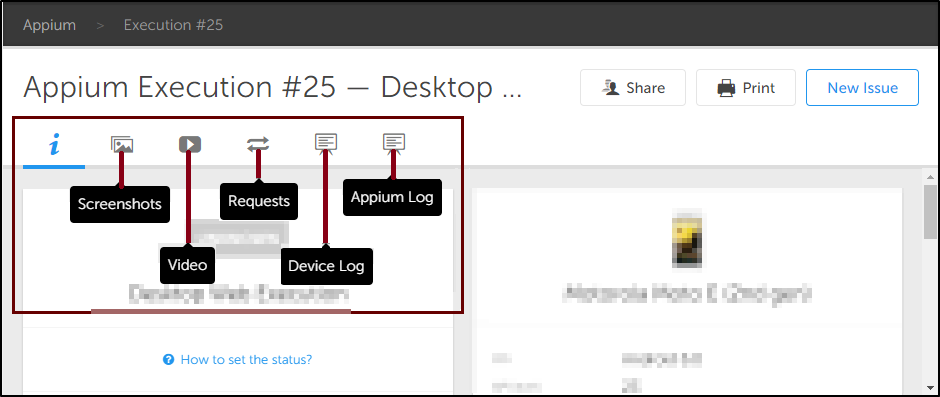 Here you can view the Test case Info, Screenshots, Video, Requests, Device Logs and Appium Logs.