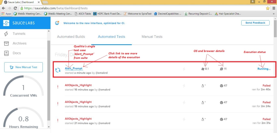 custom_exe_name: This contains the exe file name to be executed in Sauce environment. To run exe in Sauce, you must upload the file to Sauce network.
