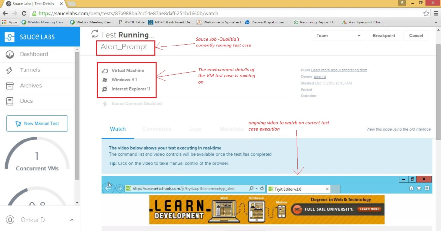 Perfecto is a cloud-based lab for Web and Mobile application testing. It allows running tests in the cloud using different combinations of operating systems, browsers, and browser versions. In this environment, all desktop web application tests are executed on virtual machines (VMs) and mobile application tests are executed on physical devices. Perfecto allows you viewing video recordings of the test case executions after the suite executions are completed.