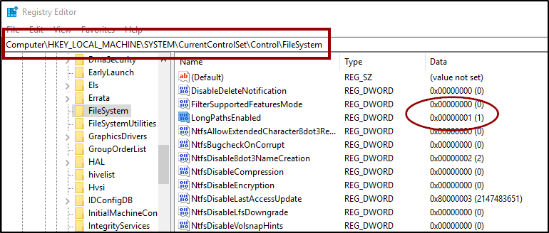HKLM\\SYSTEM\\CurrentControlSet\\Control\\FileSystem LongPathsEnabled (Type: REG_DWORD) should be set to 1.