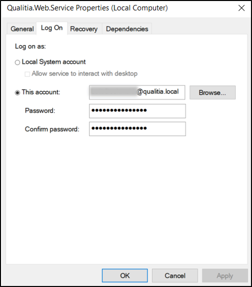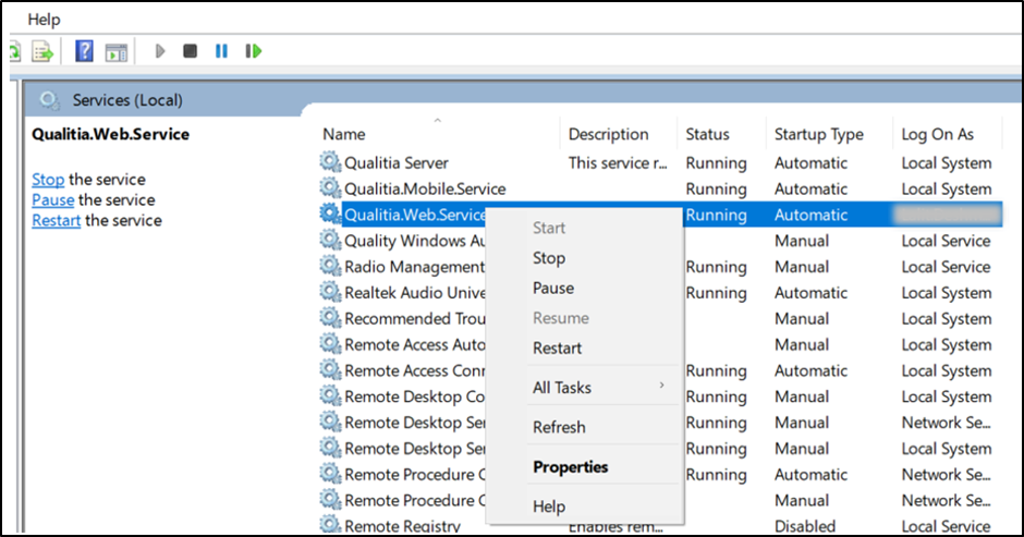 - Restart the Qualitia Server service from the Services console and continue installation.