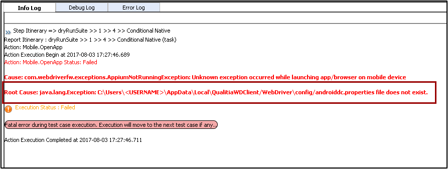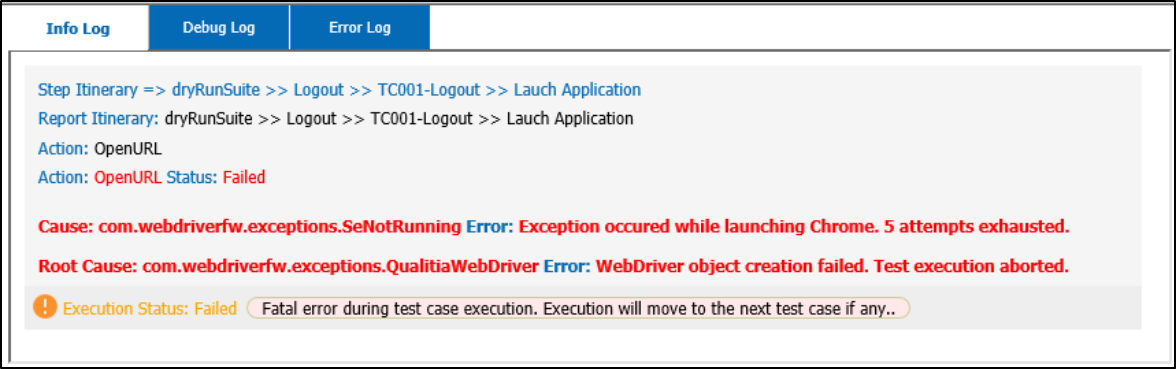“Fatal exception during execution” Error Appears While Executing a Suite