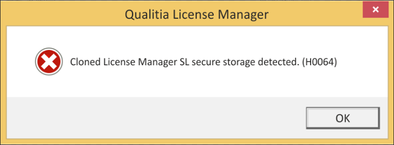 Cloned License Manager SL secure storage detected. (H0064) Error Message