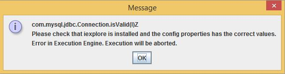 In such cases, you must update the browser driver versions. You can get the correct chrome drivers here.Suite Execution Fail Error: com.mysql.jdbc.Connection.isValid(I)Z