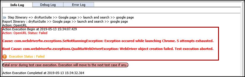 This topic provides information on how to resolve the common issues you may encounter while working on web and mobile applications automation. This topic provides information about the general issues that you may see while working with Qualitia Studio. Summary: This error occurs when the Selenium folder is missing in the Qualitia installation directory. This folder consists of all the browser drivers that are required for the test case executions using different browsers. By default, this directory is created at the time of installation. The installation process may miss to create it in some specific environments. Solution: Create a new folder in the Qualitia installation directory (%localappdata%\QualitiaWDClient), name it as selenium, and try launching Qualitia again. Problem: The following error message occurs while adding a new LDAP user: The user name or password is incorrect. Root Causes: The above error may occur due to the following reasons: You are trying to add a LDAP user by accessing the Notification Server remotely. The application identified is a local account and does not have the permission to browse the Active Directory. Domain password of the user you are trying to add has expired. Solution: To resolve this issue, refer to https://knowledge.broadcom.com/external/article/151985/systemruntimeinteropservicescomexception.html . Problem: When launching Qualitia or dry running a test case or executing a test suite, Qualitia does not work and you see the following message: Solution: You must install 64-bit Java on your computer with the latest patch for Java 8. Refer to Java website. This error occurs when the Google Chrome browser and Chromedriver are not compatible. Once downloaded, open Qualitia Automation Studio, go to Setting > Local Profile > Execution Configuration. Click Browser > Chrome. In Chrome Driver Path, select the chromedriver.exe which you have downloaded & extracted for your chrome version. Click OK. Your test cases should now get executed as expected. This error occurs due to incompatible driver version of MySQL. To resolve this error, you must download and place the compatible version of MySQL driver at the specified location. To resolve this error: Unzip the file. Copy mysql-connector-java-8.0.11.jar and place it to %localappdata%\QualitiaWDClient\app-5.x.x\WebDriver\lib location on the machine where you have installed Qualitia. Navigate to %localappdata%\QualitiaWDClient\app-5.x.x\WebDriver. Edit build.xml and replace mysql-connector-java-x.x.x-bin with the new file name (i.e. mysql-connector-java-8.0.11.jar). Save and close the file. Restart Qualitia Automation Studio. Incompatible .Net Framework: Method not found: '!!0[] System.Array.Empty()' Summary: This issue occurs when .Net framework you have installed is not compatible. Qualitia Automation Studio requires minimum .Net Framework 4.6.2 installed on your system. Solution: Close the dialogue box and upgrade the .Net Framework to 4.6.2. Refer to the Prerequisites and Configurations section for more information. To determine which .Net Framework version is installed, refer to the Microsoft documentation. Problem: Suite execution gets aborted during execution for Suite with test cases having 1000 or more test steps. Reason: This issue is observed when you execute suites from different Windows client machines connected over VPN that point to a Qualitia server, which is located on a different machine. This issue occurs when the Set time automatically option on your Windows client machines is turned on and the sync time for all the Windows client machines is different. Solution: To fix this issue, perform the following steps to turn off the Set time automatically option: Open Settings on the Windows machine. Navigate to Date & time settings. Disable the Set time automatically option. Problem: While executing a suite, a “Fatal exception during execution” error is displayed. Reason: Excessive test data is sent while executing the test cases. The default heap size for Qualitia is 3.5 to 4 GB, which sometimes may not be enough for executing a suite. Solution: Increase the heap size using one of the following methods: Method 1: Open the Qualitia.exe.config file, which is located in C:\Users\{user_name}\AppData\Local\QualitiaWDClient\app-{qualitiaVersion}. Find the EngineJVMArg setting node. Edit the value of the heap size as required. For example, enter Xmx7048 to set the heap size to 7 GB. Method 2: Go to Environment Variables > System variables. Edit the _JAVA_OPTION property. Edit the value of the heap size as required. For example, enter Xmx7048 to set the heap size to 7 GB. The following table shows the error message displayed on the screen or shown in the logs. Message Description User is Inactive When the user is marked as inactive in the database. The solution is the user must be activated from the database. Invalid Password When the user has entered the wrong password. The solution is to enter the correct password or request the admin to reset a password. The Authentication has failed When the user authentication fails due to an incorrect username. No active session is mapped to the client When a user logins again, the user is not able to find any session. Could not find a client with the specified client Id When the client id is invalid. The solution is to provide the valid client Id must be provided from the configuration file. Could not find a user with the specified user Id When user Id is invalid. The solution is to enter the correct user Id. Solution: This error occurs when Qualitia is launched using the incorrect shortcut and user tries to execute the test case for Mobile web or native application. To resolve this error; create a new shortcut of Qualitia. To create a new shortcut: Remove an existing shortcut of Qualitia from Desktop. Go to %localappdata%\QualitiaWDClient\app-4.1.0. Right-click Qualitia.exe. Click Send to and select Desktop (create shortcut). Problem: Qualitia server is not re