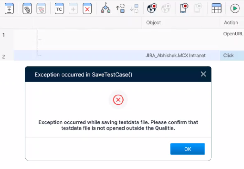 A pop-up message opens which shows the message as “Some third-party add-ins are required to launch this URL. Do you want to enable these add-ins?”Test Case Creation Fails with "Exception occurred while saving testdata file"
