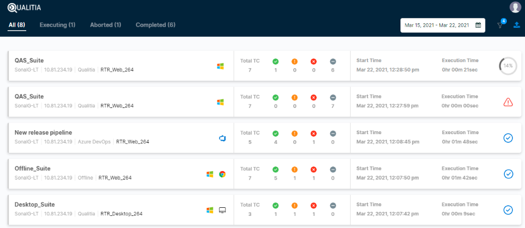 After you execute Qualitia test cases as a part of the build or release pipelines, you can access execution reports from the Reports section of Qualitia Automation Studio or Real Time Reporting Portal.