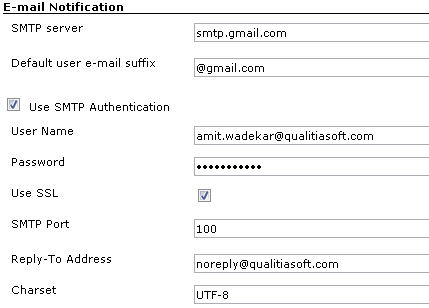 System notifies in case of any errors. Recheck the settings in case of any errors. Refer to the screenshot below for correct values of Extended E-mail Notification section.