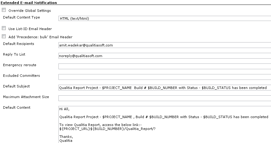 Note: This step has to be followed by step 12; otherwise Qualitia Reports will not be visible through Jenkins.Update Properties File Path for the file qer.properties along with the file name.