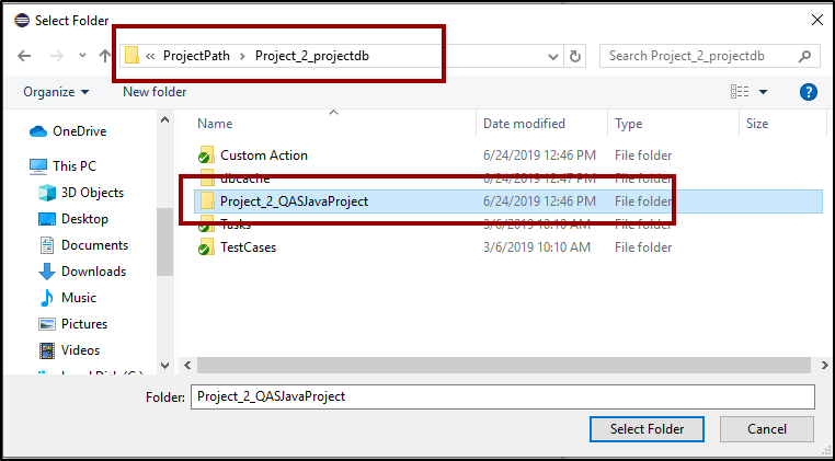In the Select root directory section, click the Browse button, select <PROJECTNAME>_QASJavaproject and click Finish. You will find this directory under Qualitia project path.