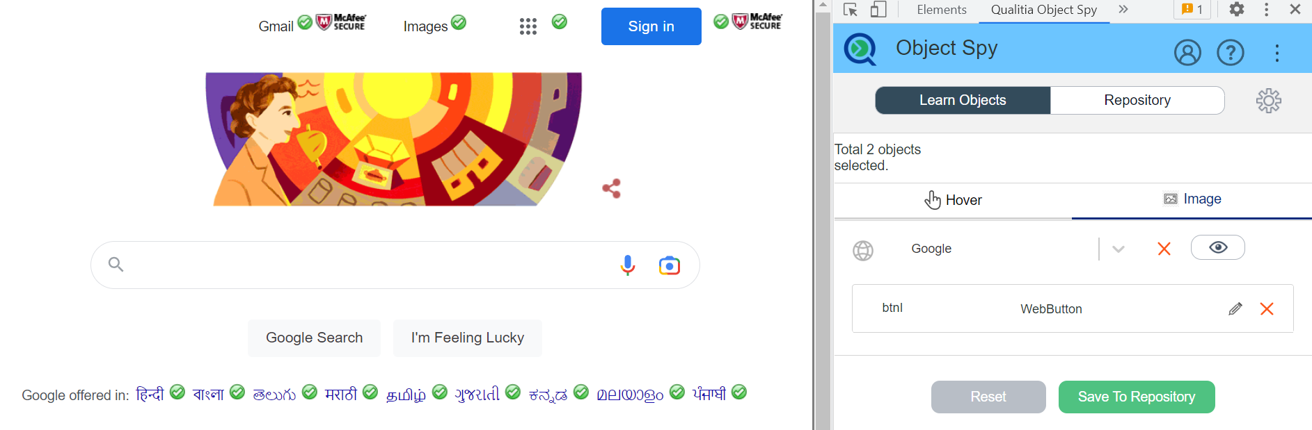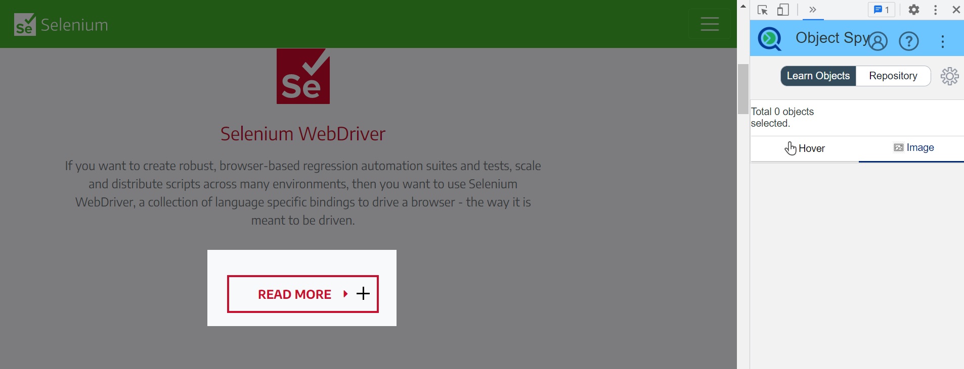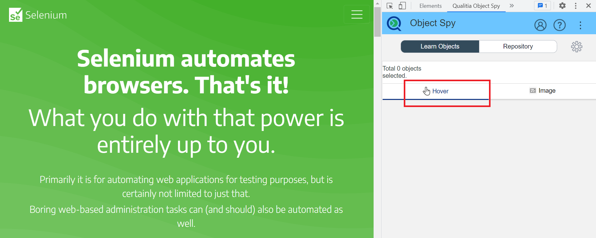 Mouse Hover: Using this mode, you can add objects in the repository just by hovering mouse pointers over objects.
