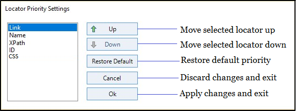 Click Up/Down buttons to changes the priorities of the locator type.