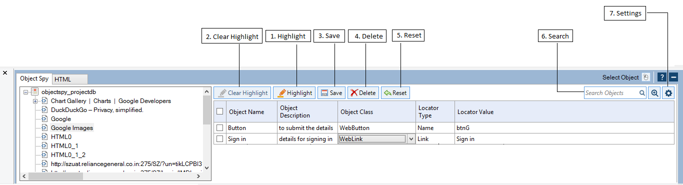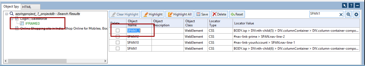 Once Object Spy is sure about the locator type and value being unique for the object, the object will get added. You can further edit the logical name of the object and rename it.