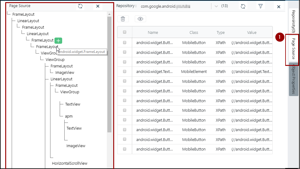 Launch Mobile Object Spy and launch the application under test. The list of objects added earlier from the selected application appears in the object repository section.
