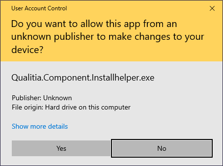 Click Yes if you have administrative privileges. You will not be able to continue with the installation if you do not have administrative privileges. The following Windows confirmation message appears: