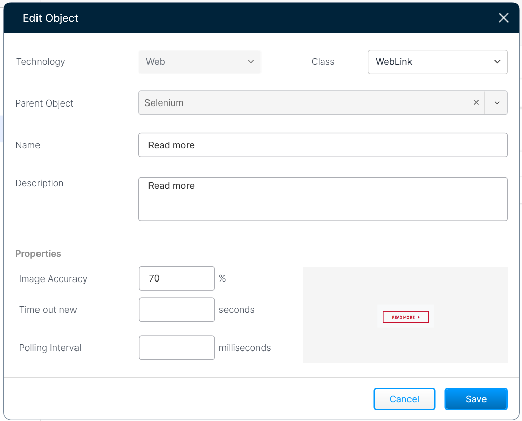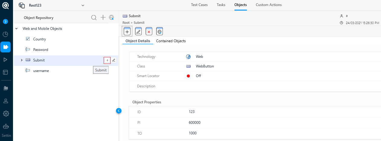 If you specify Time Out and Polling Interval, Qualitia uses the Explicit Wait mode during the execution by overriding these values specified in the associated execution profile.(Optional) To continue adding another object, select the Create Another checkbox.