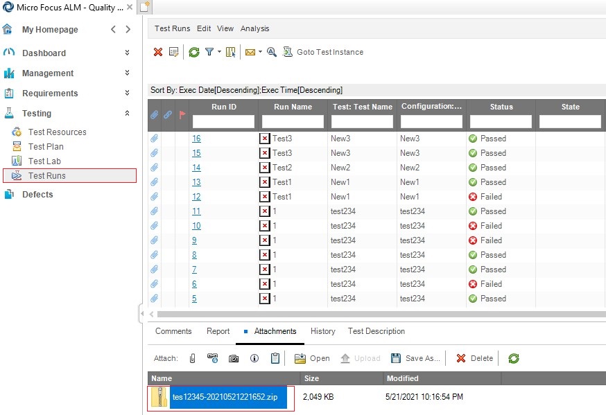 Reports get attached to the corresponding test cases in ALM.