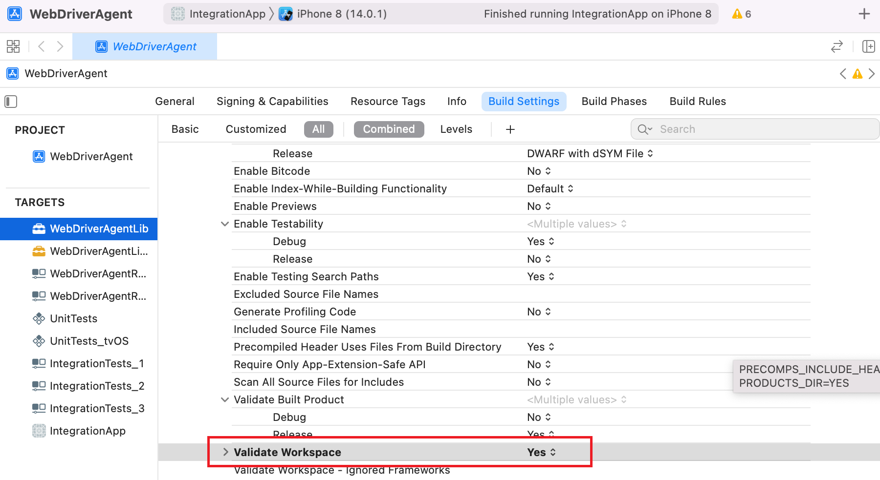 To resolve this error, set Validate Workspace to Yes in the Build Settings tab.